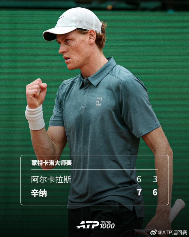 辛纳两盘击败阿尔卡拉斯,夺蒙特卡洛赛冠军